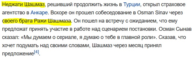 Раджи Шашмаз - сценарист и продюсер этого фильма, родной брат Неджати (Necati Şaşmaz), который в этом фильме не снимался.