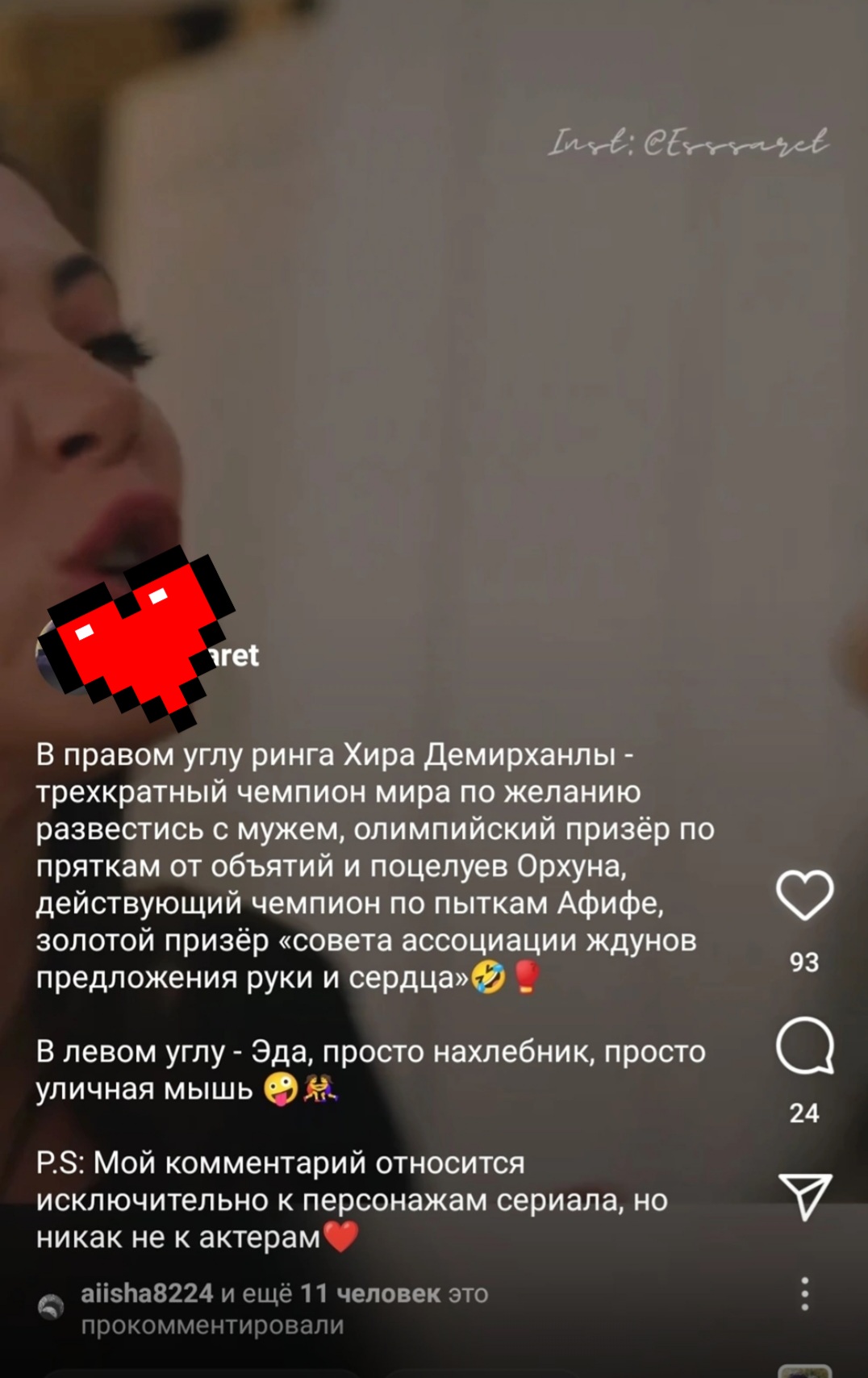 Не за что) Пока и не понятно, кто Эду оттащил от Хиры... Может и действительно, как-то писали, что Эду отправят в психушку, может после этого инцидента, что там дальше у них по сценарию.... только гадать и предполагать. От Орхуна услышать, что он отказывается от фамилии - это ВАУ, даже в мыслях не было, что он на такое пойдёт. Предполагали и в соц сетях думали, что он может из дома уйти, но не это.....ЛЕВ наш))))